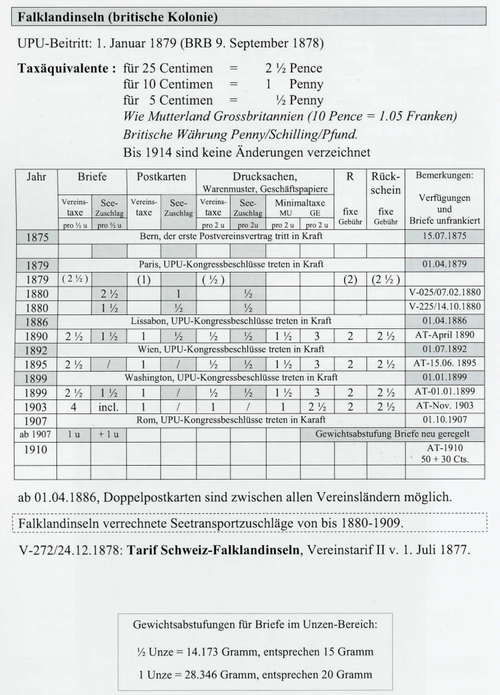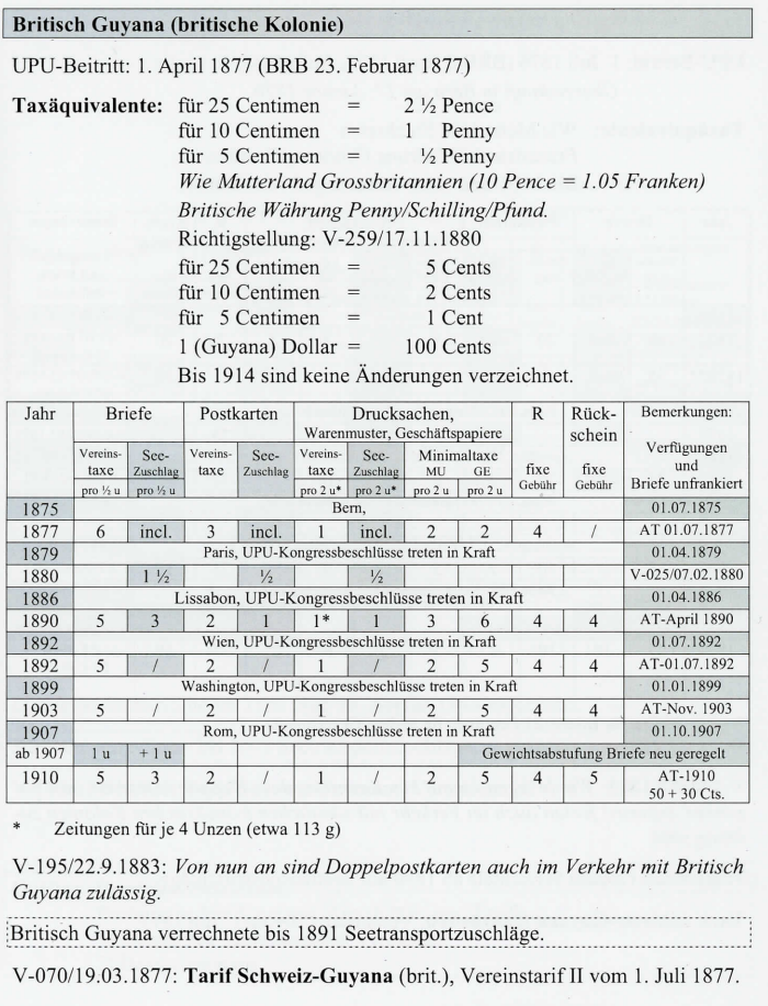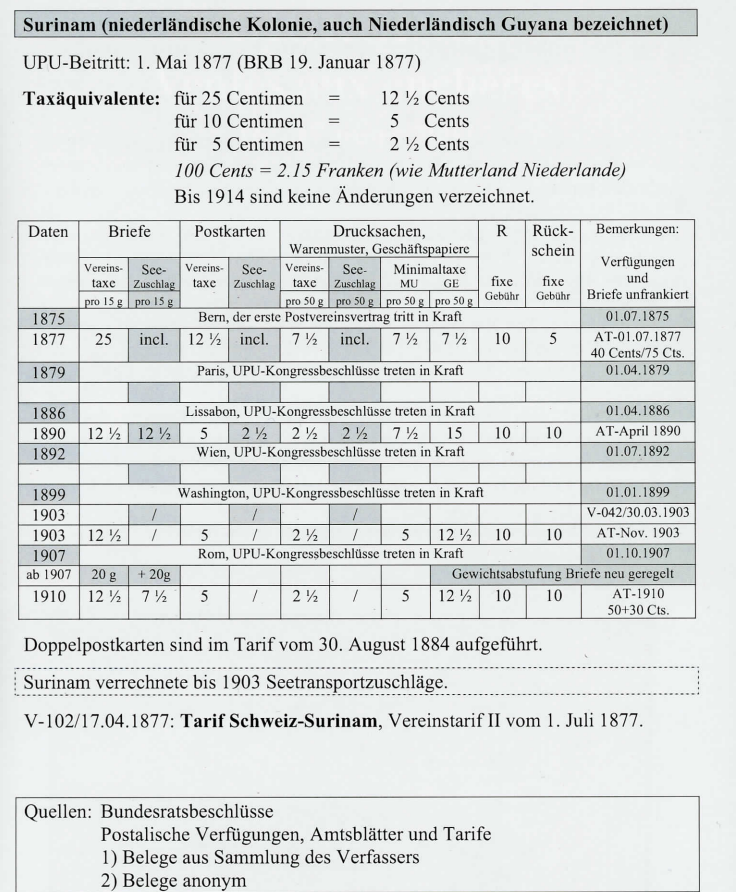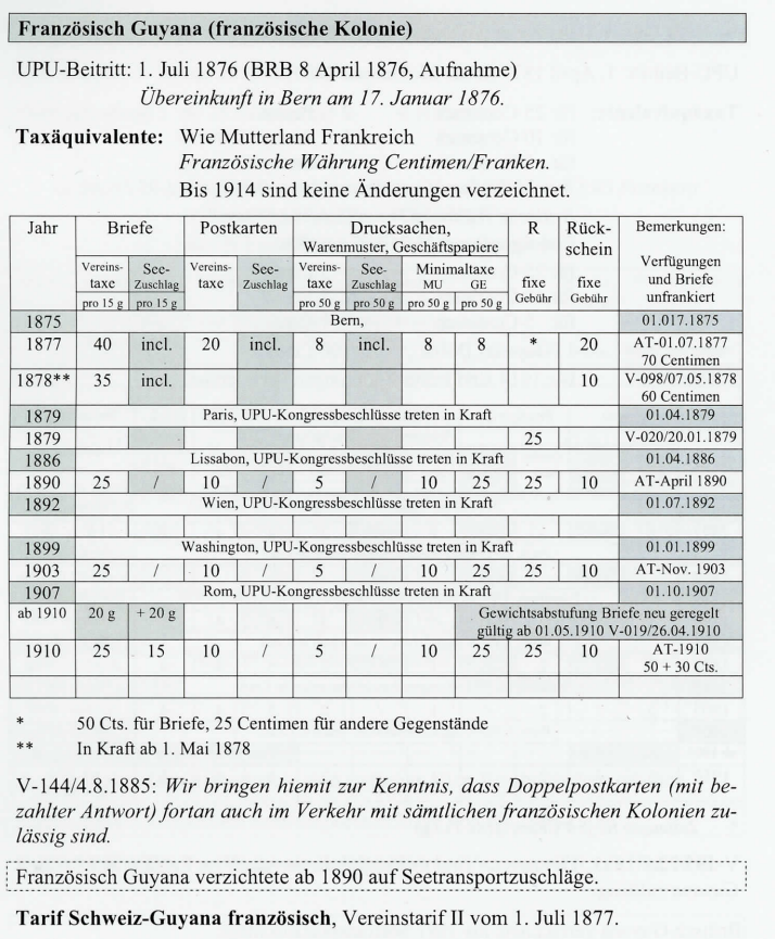 In der POSTGESCHICHTE Nr. 106 / Juni 2006 habe ich die Grundlagen der Zuschlagstaxen für den Seetransport behandelt. Als Beispiel diente der Briefpostverkehr des südamerikanischen Landes Argentinien mit der Schweiz. In weiteren Folgen werden die überseeischen Ländergruppen behandelt, welche Seetransportzuschläge auf die UPU-Taxen (Postvereinstaxen) erhoben. Unerlässlich für das Verstehen dieser Taxen sind die verschiedenen Äquivalenzwerte zur UPU-Währung in Centimen und Franken (Einführung siehe PG Nr. 106). Im Jahre 1876, anlässlich der Berner Sonderkonferenz (Aufnahme von Kolonien), werden die Seetransitgebühren festgelegt. Diese Seetransitgebühren waren bereits im Gründungsvertrag von 1874 vorgesehen.