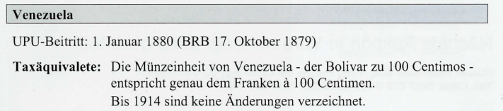 V-060/28.03.1885: Korrespondenzen nach dem ehemaligen Küstenlande von Bolivia. Taxen. Einer Mitteilung des internationalen Postbüreau zu Folge ist durch einen zwischen den Republiken Chile und Bolivia abgeschlossenen Waffenstillstand das ehemalige bolivische Küstenland bis auf Weiteres unter die Verwaltung von Chile gestellt worden. In der Folge dessen unterliegen die Korrespondenzen nach den in diesem Küstenlande gelegenen Orten, wie Cobija, Huanillos, Tocopilla, etc. den Taxen des Weltpostvereins.