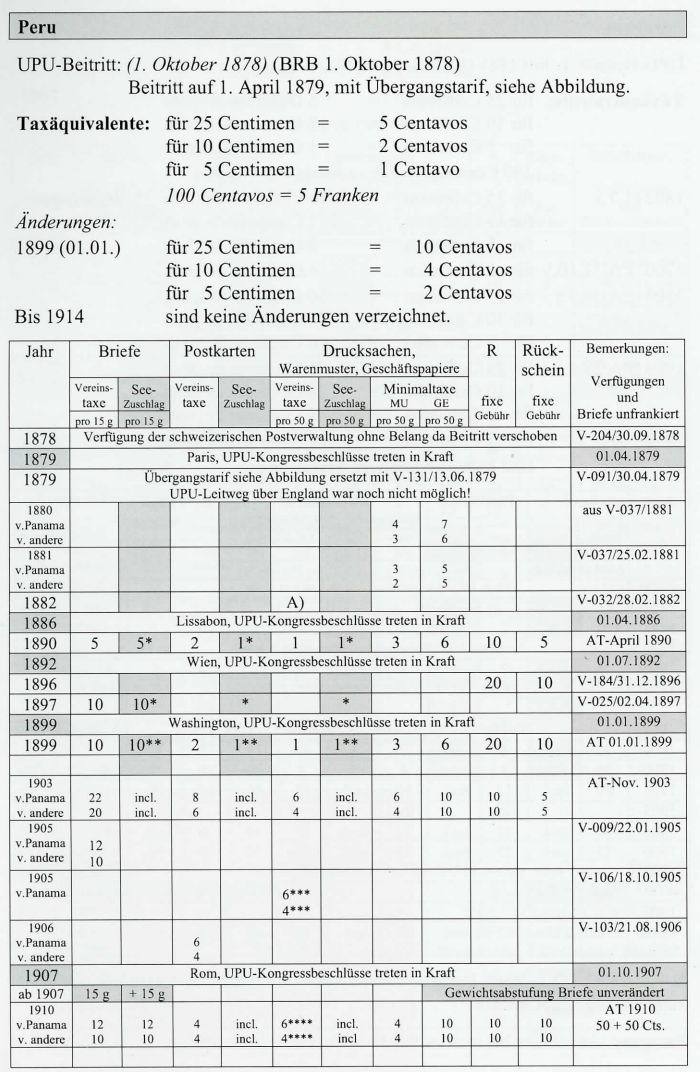 V-204/30.09.1878: Tarif Schweiz-Peru, Vereinstarif II vom 1. April 1879.