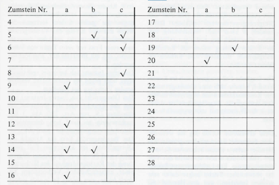 In der BBZ 4/82 beschrieb Herr Hertsch die Existenz eines Nahtwasserzeichens bei einem Umschlag Nr. 13. Demnach wurde das Papier über eine Filzbahn zur Trokkentrommel geführt. Wenn diese Filzbahn riss, wurde sie mit Draht geflickt. Diese Flickstellen wurden dann mehr oder weniger auf das Papier übertragen. Ausser der Nr. 13 existiert noch ein 25er Tüblibrief (Z 14), bei dem quer über den Umschlag ein solches Nahtwasserzeichen sichtbar ist. Während beim Umschlag Z 13 das Kontrollzeichen Taube fehlt, ist beim Umschlag Z 14 die Taube in Normalstellung sichtbar. Ein dritter mir bekannter Umschlag Z 4 hat ein deutliches Nahtwasserzeichen, welches auf der Vorderseite von der rechten unteren Ecke links vom Wertstempel vorbei verläuft. Diese Nahtwasserzeichen sind sicher sehr selten; sie werden jedoch kaum beachtet, weil sie nur bedingt für ein Ausstellungsobjekt geeignet sind. Der Ordnung halber sei hier angeführt, dass bei fast allen Umschlägen Papierdicken von 0,08 — 0,12 mm vorkommen.