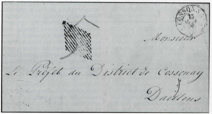 Fig. 1. Lettre officielle du 15 mai 1853 avec faxe 5 annulee de la grille federale.
