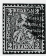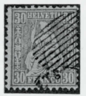Fig. 4. Helvetia assise 30 et outremer avec obliteration illisible (probablement les Brenets) annule avec la grille federale.