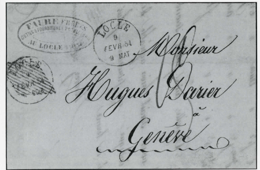 Fig. 2. Lettre du Locle du 9 fevrier 1854 avec date du 9.2. SOIR annulee par la grille federale.