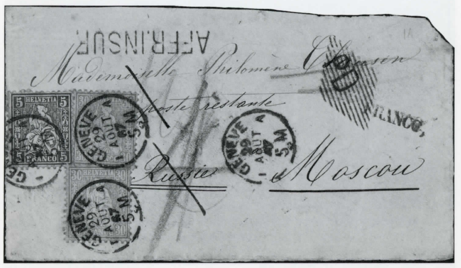 Fig. 3. Lettre de Geneve du 29.8.67pour Moscou. Affranchissement insuffisant et grille federale annulant le PD.