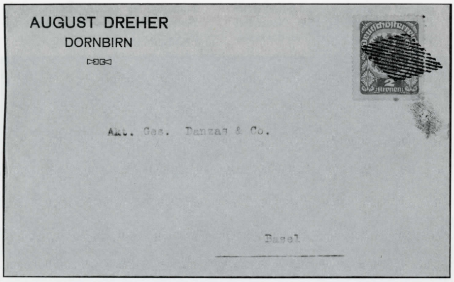 Fig. 6. Lettre de Dombirn adressee ä Bäle. Au passage St Gall a annule le timbre par une grille federale.