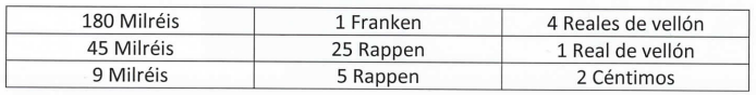 Die ursprüngliche portugiesische Währung Reis (singular Real) wurde 1835 per Dekret auf Grund seiner Schwäche in Milreis umgewandelt (= 1000 Reis). Der Begriff Reis wurde jedoch trotzdem weiterverwendet.
