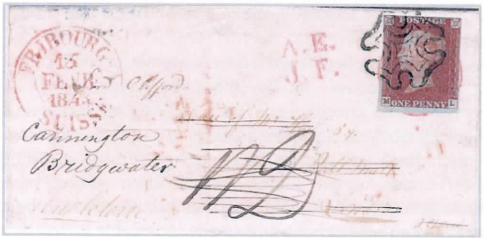 Schon etwas komplizierter wird es beim Brief vom 15. Februar 1843 von Fribourg nach London (Abbildung 2). Er war mit 10 Kreuzern vorausbezahlt bis zur Schweizer Grenze. Der französische Stempel A.E./J.F. (Affranchieä l'etrangerjusqu'ä lafrontiere) stammt vom Grenzbüro in Fernay. Der Stempel des Grenzbüros ist von der englischen Marke überdeckt. Die Taxierung von l Shilling 2 Pence steht für den Transport durch Frankreich bis nach London. Der Adressat war abgereist, daher die Umadressierung. Der Taxierungsvermerk wurde, weil bezahlt, gestrichen. Gleichzeitig erfolgte die Frankatur mit einem Pence für den Weitertransport nach Carrington. Für die Schweiz klar ein Brief der Vormarkenzeit für Grossbritannien natürlich nicht.