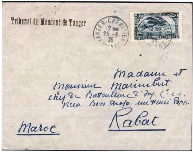 Abb.9: Brief des französisch-scherifischen Postamtes in Tanger aus dem Jahr 1925 wurde mit Nachporto belegt.