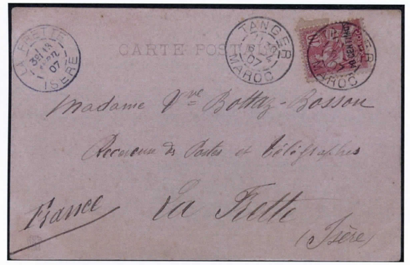 Abb.6: Postkarte vom französischen Postamt in Tanger von 1907. Verwendet wurde eine Marke der französischen Post in Marokko.