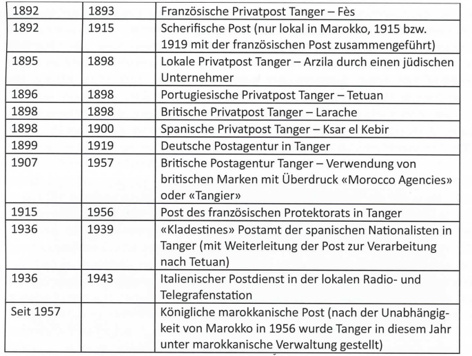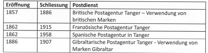Die folgende Tabelle der Postagenturen soll einen entsprechenden Überblick geben: