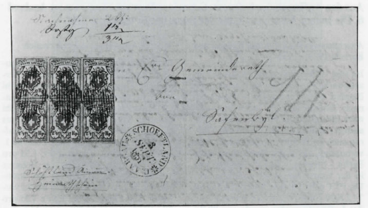 Nachdem letzthin eine Frankatur mit einem 6er Block der Ortspost vorgestellt wurde, möchten wir nun einen Brief mit einem 6er Block der Poste Locale präsentieren. Das Porto dieser Nachnahme nach Safenwyl setzt sich zusammen aus 10 Rp. Brieftaxe für dreifaches Gewi