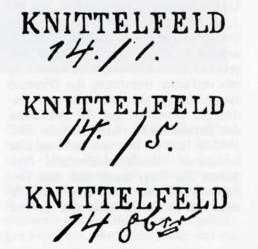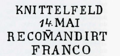 Knittelfeld ist eine regsame Industriestadt in der Ober-Steiermark am Ufer der Mur. Eine Poststation wurde dort schon 1703 errichtet. Seit 1818 wurde ein einzeiliger Langstempel «KNITTELFELD» verwendet, ab 1838 gibt es diesen Stempel auch mit Datum. Irgendwann im Jahre 1844 musste dann der Tageseinsatz «14» abhanden gekommen sein. Vielleicht wurde er verloren, Karl Huber vermutet in seinem «Altösterreich-Lexikon» (1981), dass er vielleicht «von seinem Sprössling herausgefischt» wurde. Der Postmeister beschaffte nun nicht eine neue Ziffer für seinen Stempel, sondern fügte jeweils am 14. jedes Monats das ganze Datum handschriftlich bei. Er hätte ohne weiteres den MonatsEinsatz stehen lassen und nur die Ziffer «14» einsetzen können, was wesentlich weniger Arbeit gewesen wäre. Er hätte sogar anstelle der Zahl «14» die Ziffer «4» einsetzen können und dann nur mehr eine «l» vorsetzen müssen - warum er das nicht tat, wird wohl für immer unerklärt bleiben. Die Zahl «14» aus den beiden Ziffern-Einsätzen «l» und «4» zusammenzusetzen, wird wahrscheinlich nicht möglich gewesen sein, weil der Raum im Stempel zu klein war. Fast das ganze Jahr 1844 behalf sich der Postmeister auf diese Weise mit handschriftlich eingesetztem Datum, dann hatte er wieder einen «Vierzehner». Hatte er einen neuen angeschafft - oder den alten gefunden?