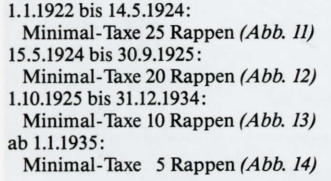 4. In der Inflationszeit nach dem Ersten Weltkrieg galten für Post aus dem Ausland Minimaltaxen, unabhängig vom effektiv fehlenden Betrag gemäss der Formel 2: