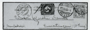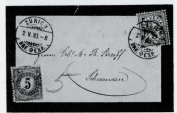 Es ist sicher schon jedem SchweizSammler aufgefallen, dass mit Nachund Strafporto taxierte Briefe, Karten und auch Drucksachen häufig bunt, mindestens aber mit zwei Taxmarken frankiert sind, vor allem bei den «Grossen Wertziffern im Rahmen» mit den Farben «blau/blau» und «hellgrün/ rot» der Jahre 1878 bis 1910. Wir erwähnen etwa die Post- und Ansichtskarten aus Deutschland und Österreich mit 5+1 0 Rappen, Briefe aus Deutschland mit 5 + 20 oder Briefe aus Grossbritannien und den USA mit 10 + 20 Rappen, ler, 2er, 3er, ja sogar 5er Marken als TaxEinzelfrankturen kommen dafür umso weniger vor. Die Ausgabepolitik der Taxmarken folgte eben ihren eigenen Gesetzen oder Überlegungen, die wir im folgenden darzustellen versuchen.