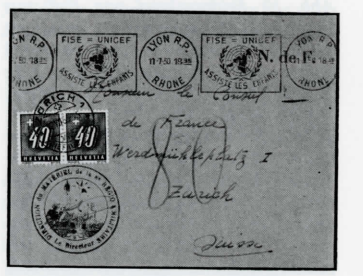 Abb. 15: Unfrankierter Brief von 1950 aus Frankreich, nach Formel 4 mit dem damaligen Schweizer Ausland-Brief - Porto von 40 Rappen x 2 = 80 Rappen taxiert. Taxmarken 2x ZU60y.