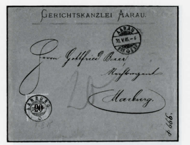 solcherart frankierte Briefe waren während der gesamten Taxmarkenzeit häufig. 40 Rappen Taxe war also kein fester Satz; es gibt auch mit weniger oder mit mehr als 40 Rappen taxierte Briefe aus dieser Epoche. Mit ändern Worten: Es gab, abgesehen von den Minimalgebühren, nie Einheits-Taxen