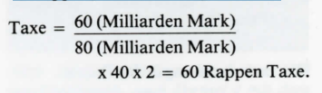 Ohne die Geister verwirren zu wollen, müssen wir dennoch auf eine noch einfachere Tax-Berechnungsmethode aufmerksam machen, welche grosso modo bis zum 31.1.1921 angewendet worden ist. Warum bis zu diesem Datum? Bis dahin galten nämlich ausserordentlich stabile Posttaxen im internationalen Verkehr, vom Weltpostverein «Taxäquivalente» benannt (Porto-Gleichwerte), die durchaus mit festen Wechselkursen vergleichbar sind.