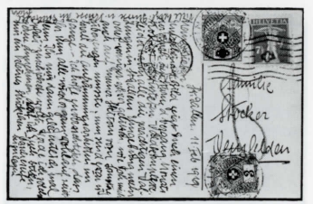 Abb. 8: Auf dieser Karte wurde der Text auf Kosten des Adressfeldes vergrössert. Daher Taxierung wie ein Brief nach Formel 3 (Inlandporto 191915 Rappen): 15 - 7'/2 = 7'A, aufgerundet auf 8 Rappen Taxe. Taxmarken ZU30,38.