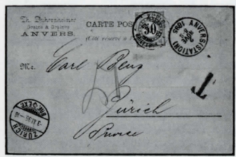 1. Gänzlich unfrankierte Drucksachen und Ansichtskarten wurden lange Zeit überhaupt nicht befördert. Ab 1892 waren die neu aufkommenden privaten (Ansichts)karten zwar zugelassen, doch verlangten verschiedene Staaten, dass sie wie Briefe frankiert wurden. Dementsprechend gibt es zahlreiche Ansichtskarten mit Brief-Taxierungen, obschon eine Marke gemäss dem Porto für die amtlichen Ganzsachen-Postkarten aufgeklebt war (Abbildung 5). Logischerweise wurden gänzlich unfrankierte Karten bis etwa 1900 wie unfrankierte Briefe taxiert (Abbildung 6).